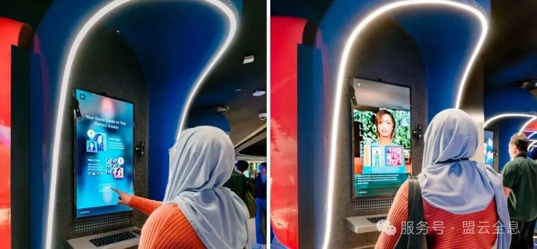 在展覽中,觀眾可以看到自己的虛擬頭像與未來城市景觀結(jié)合,這種體驗遠比傳統(tǒng)的屏幕展示更加震撼和真實。