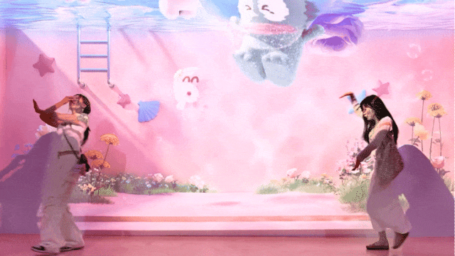 雙子星的星光花園則展示了全息技術(shù)的另一魅力。當(dāng)游客在空間中舞動時(shí),屏幕中的Kiki和Lala會實(shí)時(shí)模仿動作,與游客共舞。
